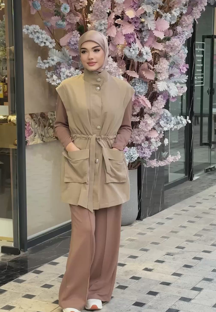 3 lü takım Bej Tesettür Giyim Yelek Sportif